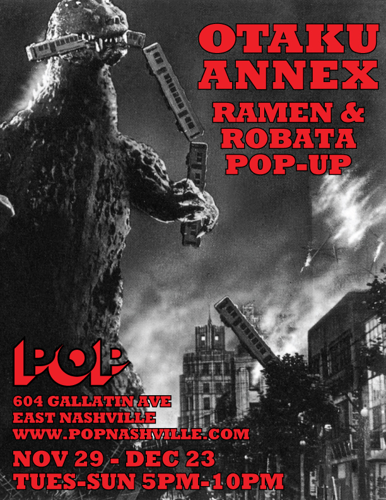 Sarah and Brad Gavigan, the husband-and-wife team of restaurateurs behind the popular Little Octopus and Otaku Ramen, announced today that they will close their dedicated pop-up space, POP, at the end of the year. Located at 604 Gallatin Ave. in East Nashville, POP was the incubator that helped launch both Otaku and Little Octopus, in addition to hosting special events featuring accomplished chefs from within Nashville and around the country.
